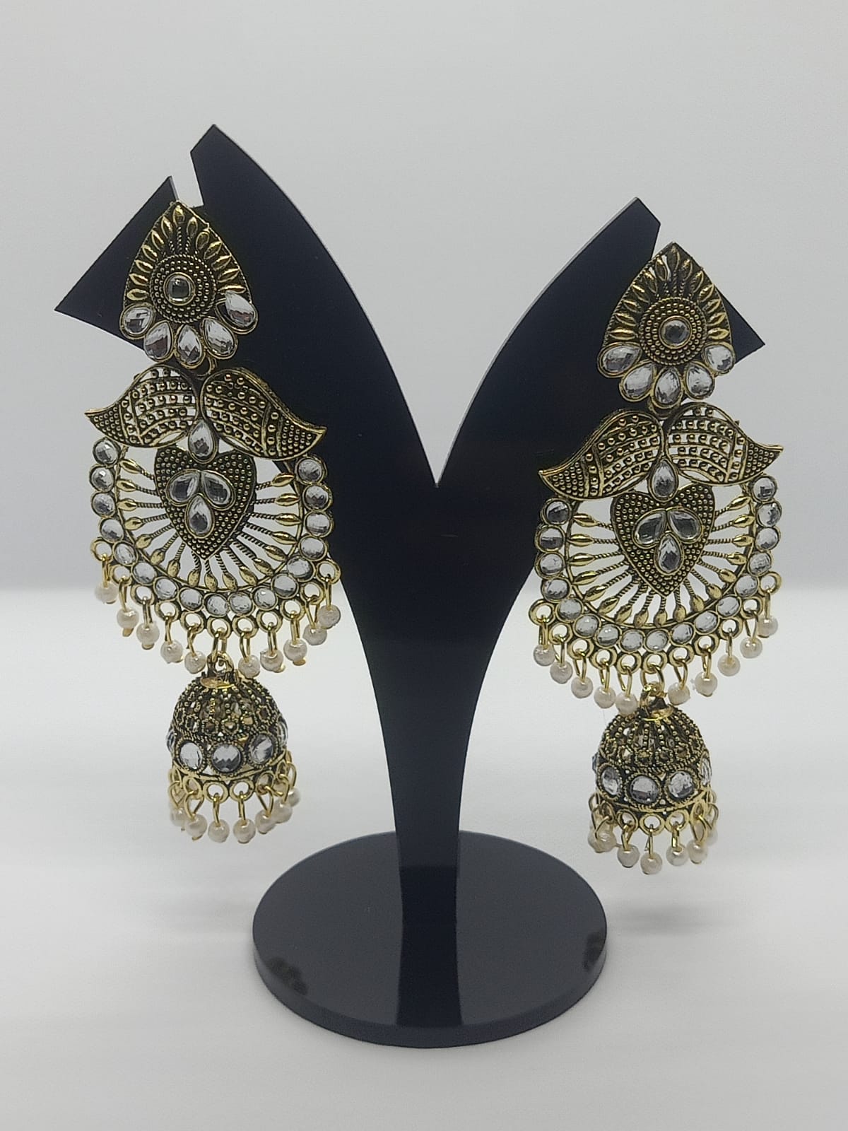 These jhumkas often feature elaborate designs inspired by traditional Indian jewelry, with dangling beads or delicate filigree work. These traditional Indian earrings are characterized by their distinctive bell-shaped design, often featuring a dome or stud at the top and a bell-shaped, dangle below. Jhumka are best for indowestern and ethnic designer outfits.