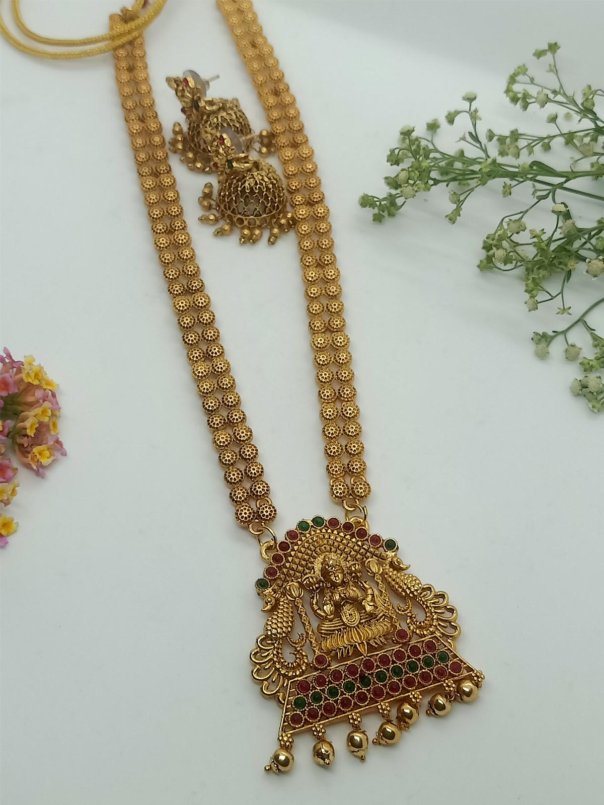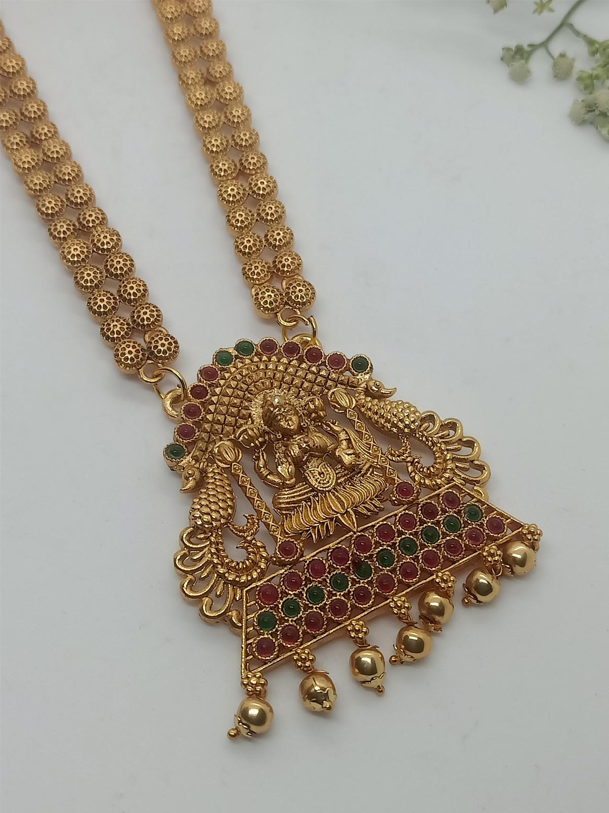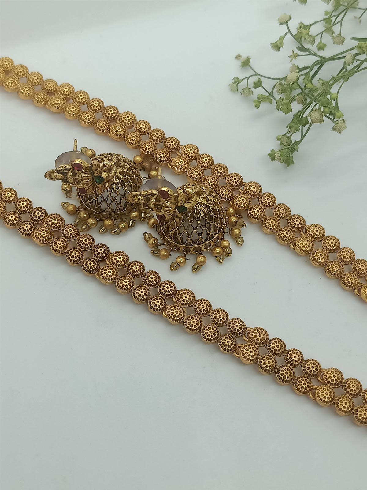 Discover the exquisite charm of tradition with our Antique Necklace. This timeless masterpiece embodies the essence of Indian heritage. It adds a regal touch to any ensemble. Perfect for special occasions or celebrating cultural pride. Elevate your style and embrace the rich cultural heritage with this captivating necklace. Antique Lakshmi Haram with perfect ethnic look that gives a perfect match for saree.