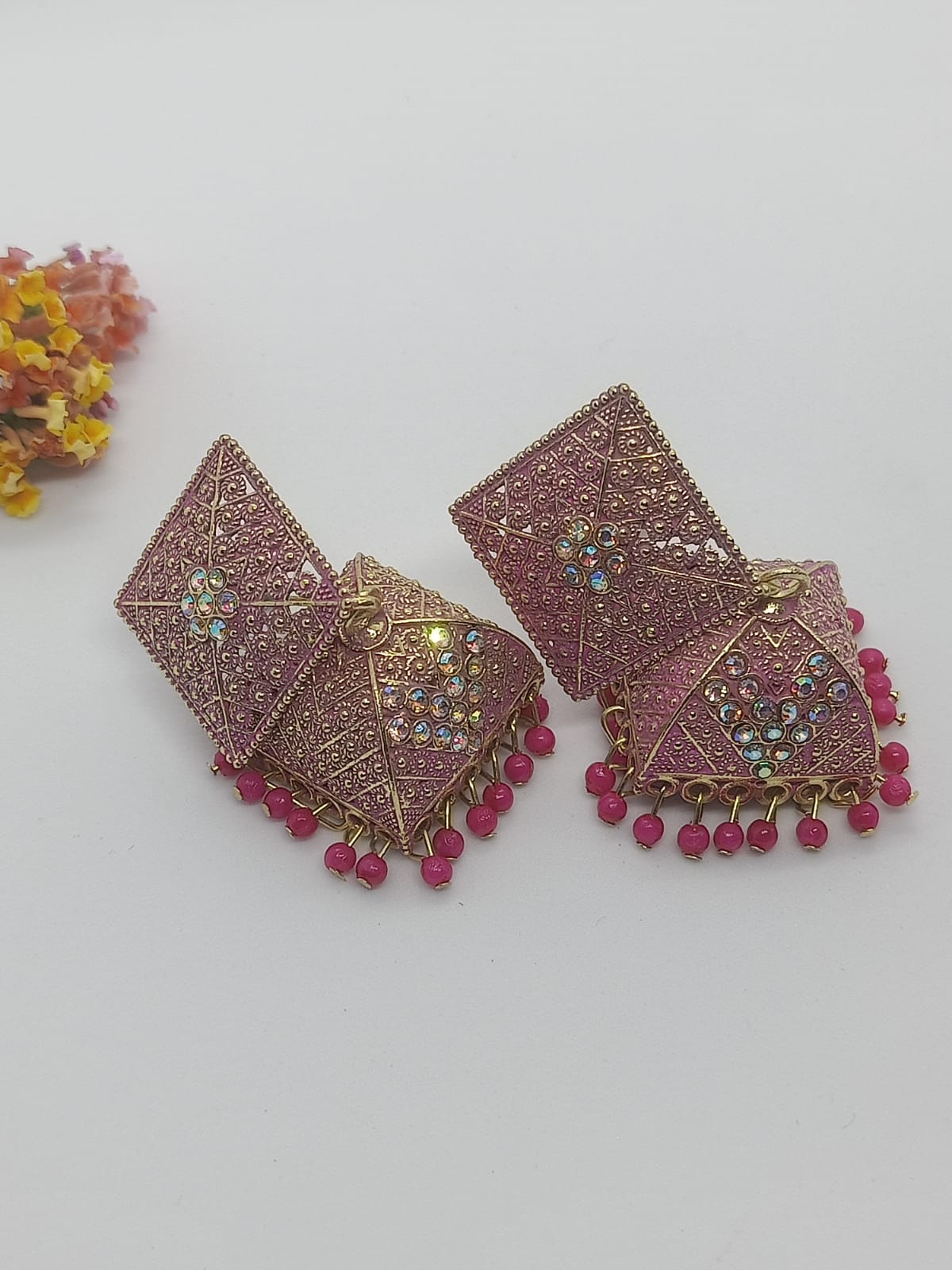 These jhumkas often feature elaborate designs inspired by traditional Indian jewelry, with dangling beads or delicate filigree work. These traditional Indian earrings are characterized by their distinctive bell-shaped design, often featuring a dome or stud at the top and a bell-shaped, dangle below. Jhumka are best for indowestern and ethnic designer outfits.