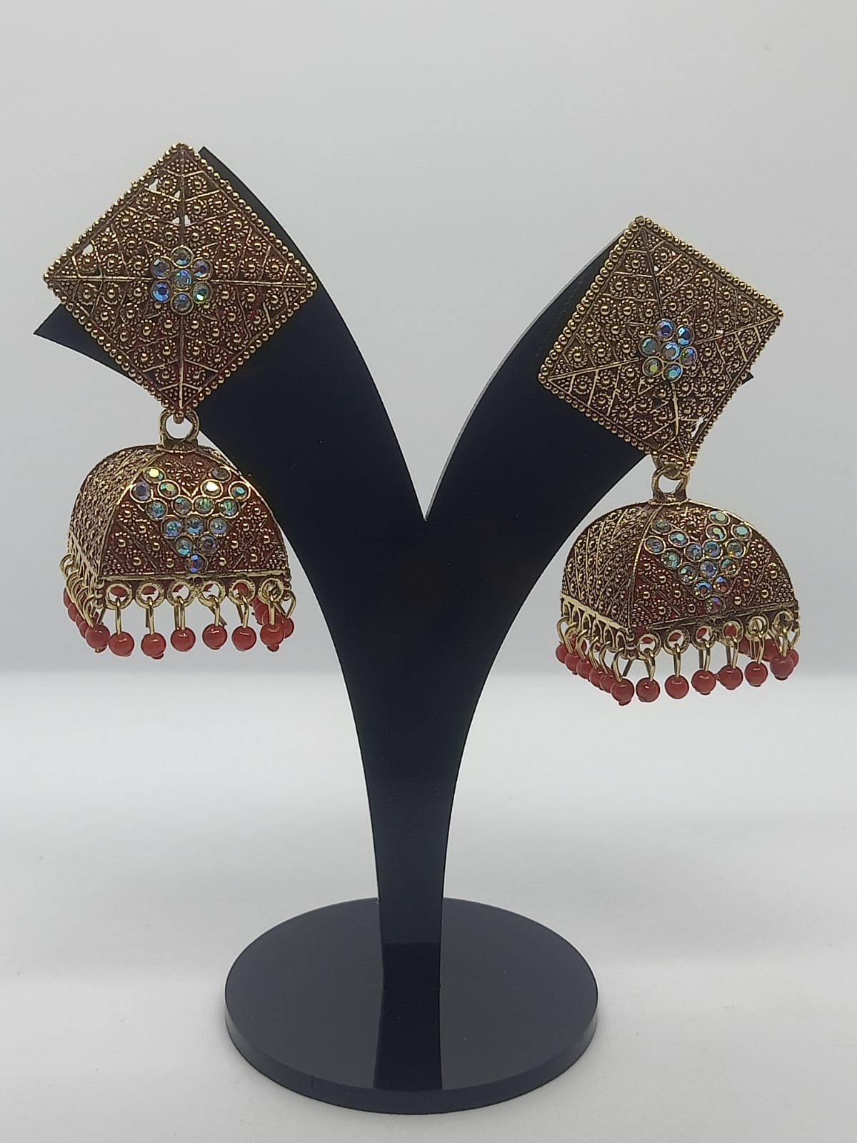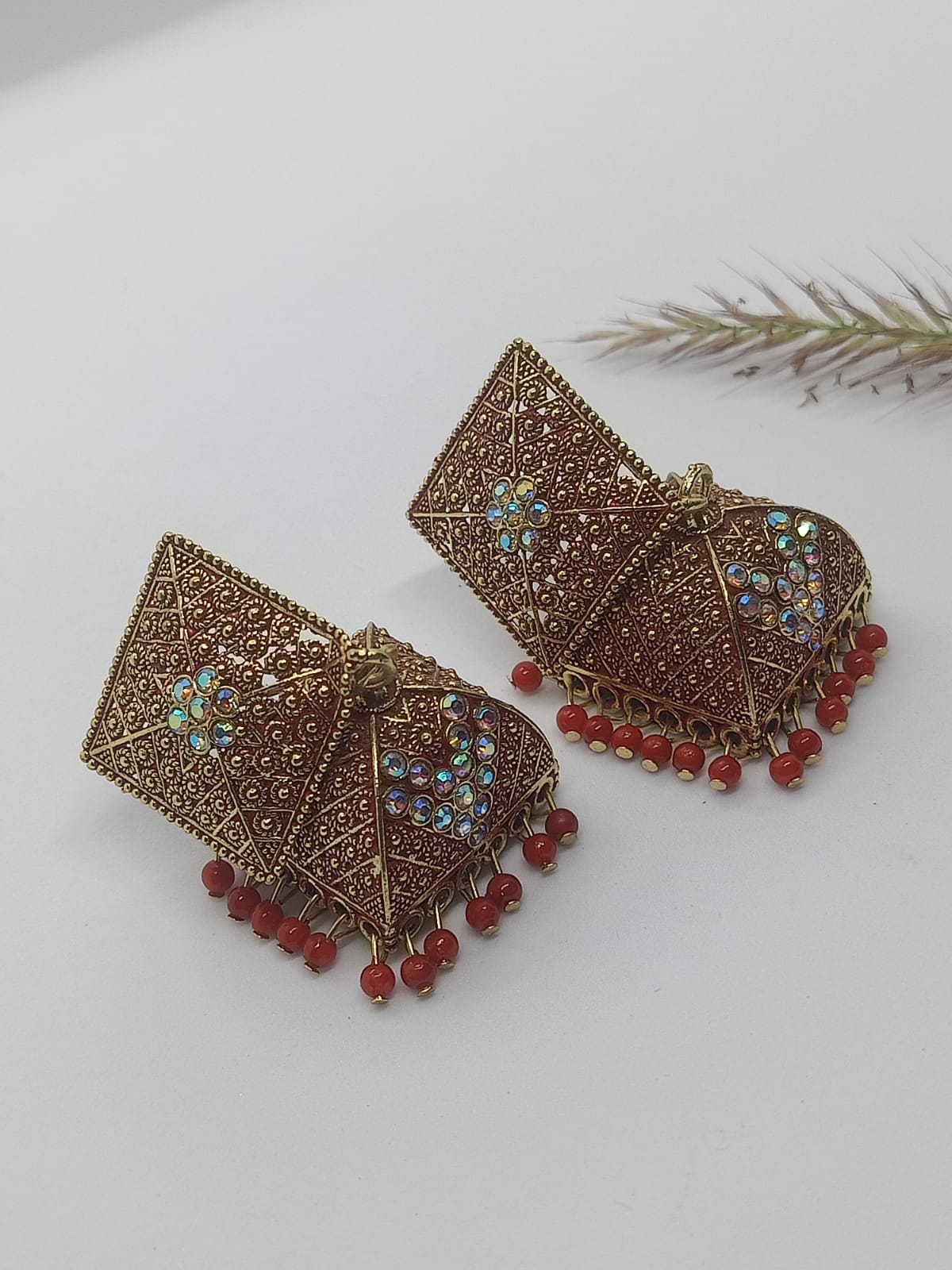 These jhumkas often feature elaborate designs inspired by traditional Indian jewelry, with dangling beads or delicate filigree work. These traditional Indian earrings are characterized by their distinctive bell-shaped design, often featuring a dome or stud at the top and a bell-shaped, dangle below. Jhumka are best for indowestern and ethnic designer outfits.