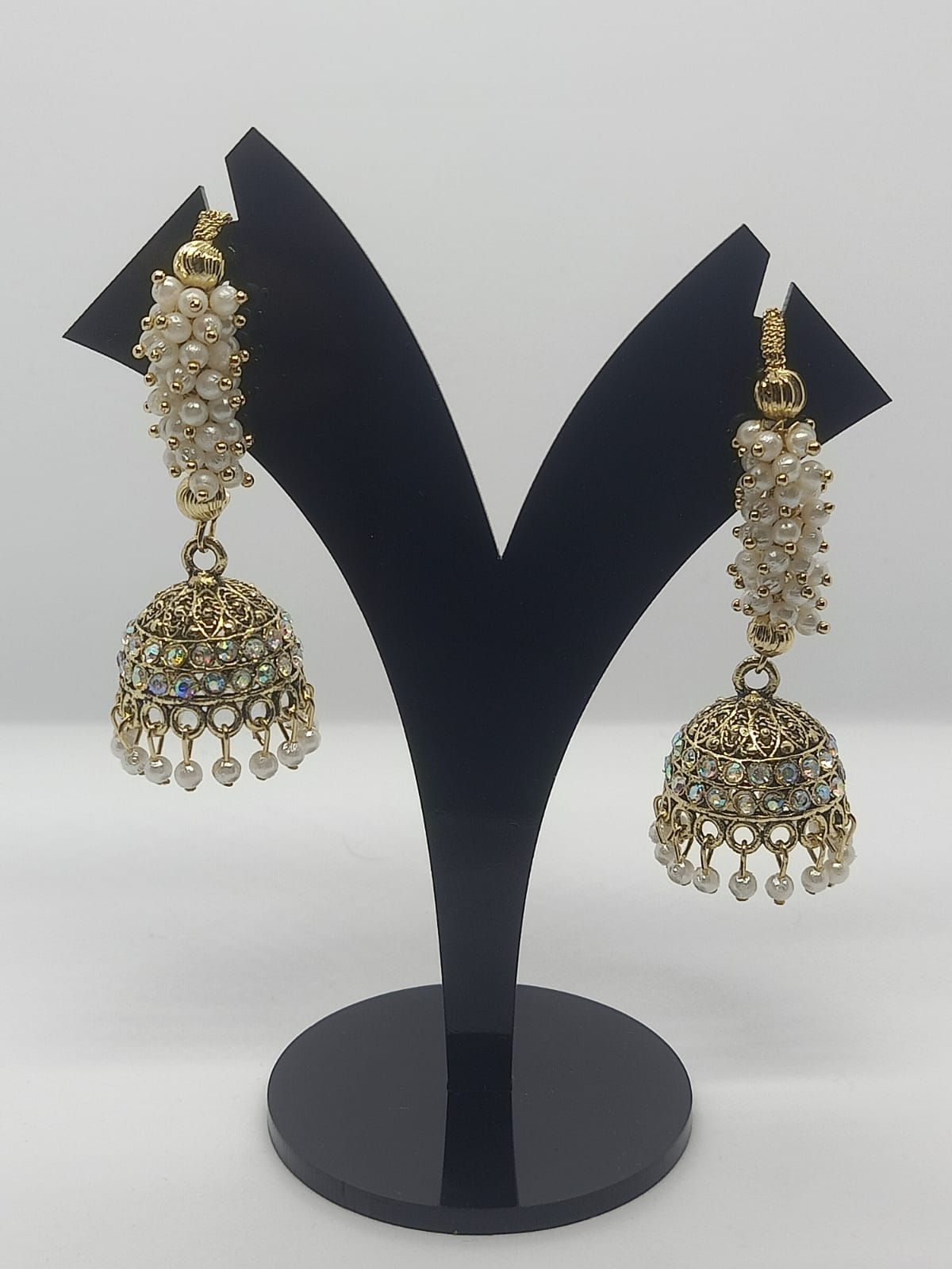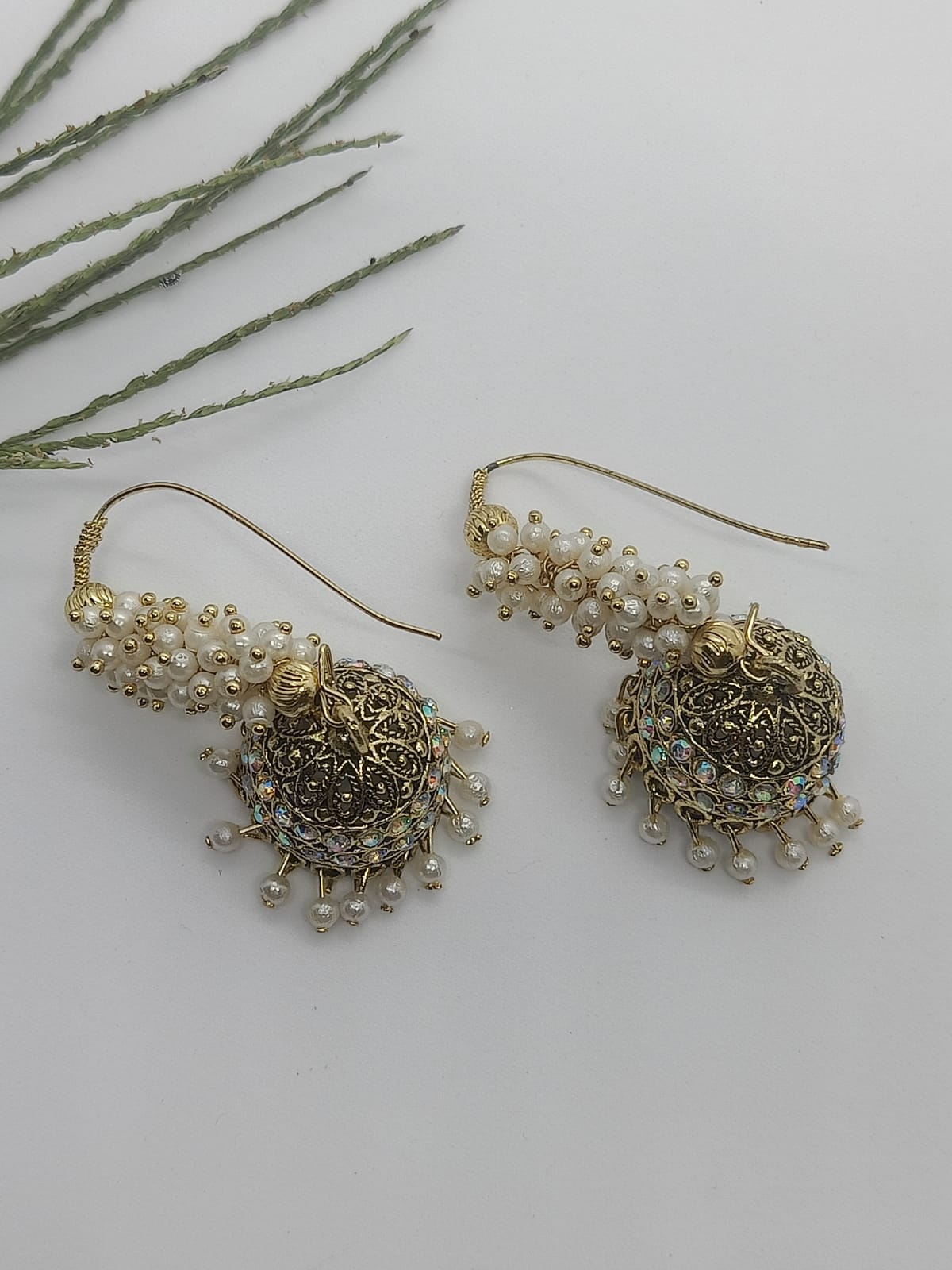 These jhumkas often feature elaborate designs inspired by traditional Indian jewelry, with dangling beads or delicate filigree work. These traditional Indian earrings are characterized by their distinctive bell-shaped design, often featuring a dome or stud at the top and a bell-shaped, dangle below. Jhumka are best for indowestern and ethnic designer outfits.